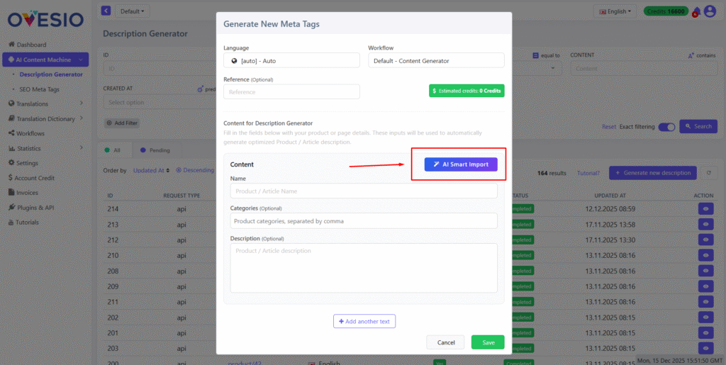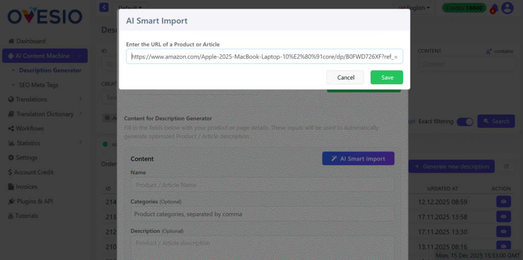 If you don’t know what Ovesio is, it’s the first E-Commerce AI scaling engine that can automatically do translations, product descriptions, and SEO for you.